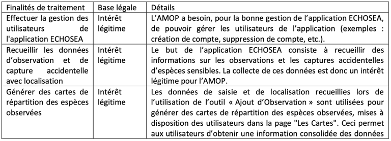 Nous, l’Association Méditerranéenne des Organisations de Producteurs – Sigle : AMOP, agissons en tant que responsable de traitement pour l’application ECHOSEA. Nos coordonnées sont les suivantes :